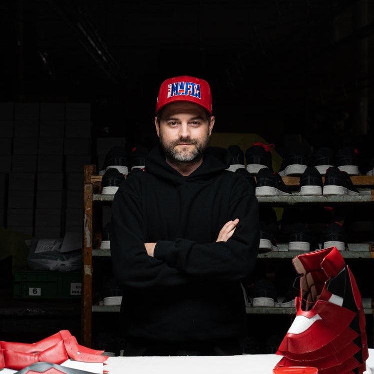 Nick is the founder of "theheyyman" group. Originally from Buffalo, New York, he began his career as an artist before relocating to Los Angeles, where his work evolved into the design and development of bespoke footwear, leather goods, and collectible products.